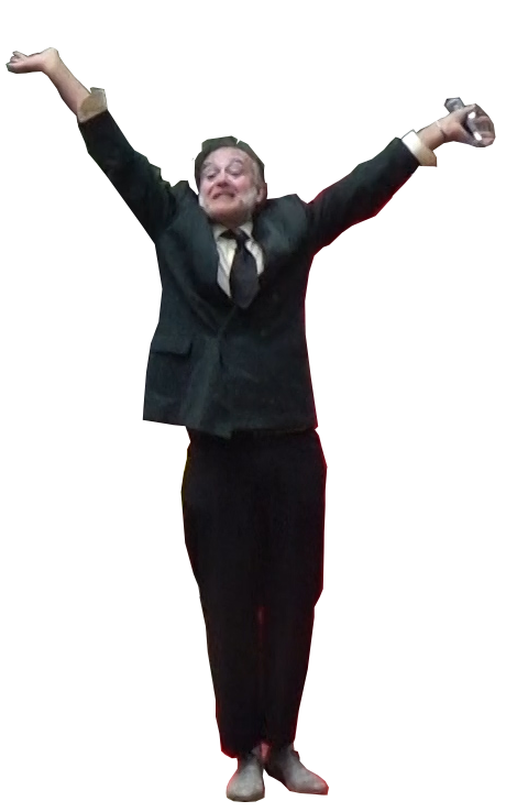 Une fois sur scène, tout change : il devient ce musicien convaincu d’être un grand guitariste. Il peut même arriver en homme-sandwich pour annoncer son spectacle. Ce qu’il est déclenche le rire, bien plus que ses maladresses.